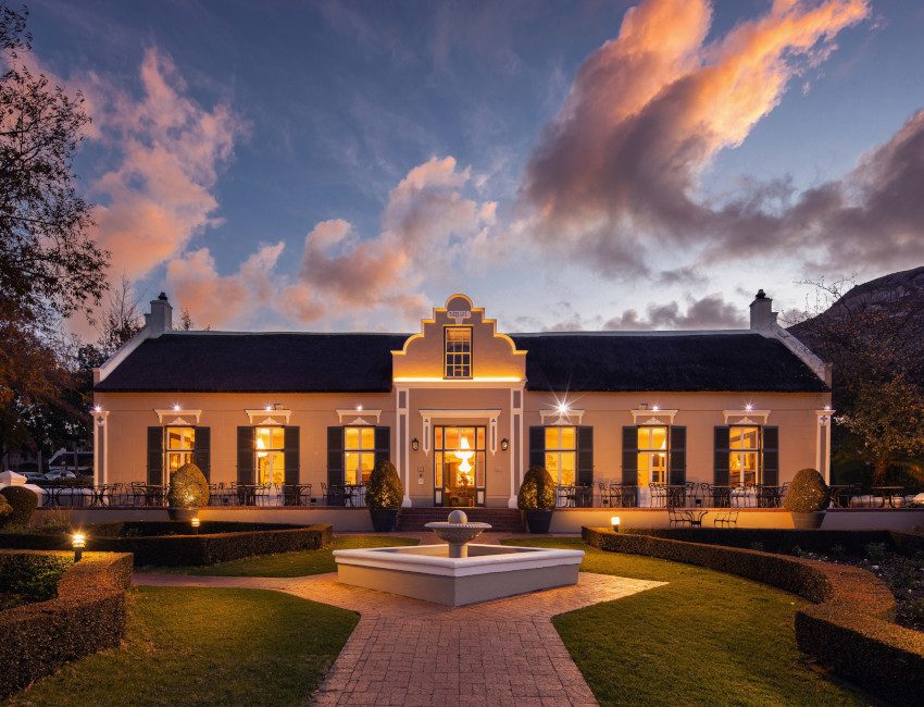 Set against Paarl Rock, this 5-star historic manor-turned-hotel blends gracious Old World elegance with contemporary comfort. Guests wander lush gardens, dine on innovative cuisine and experience unhurried luxury in the Cape Winelands.