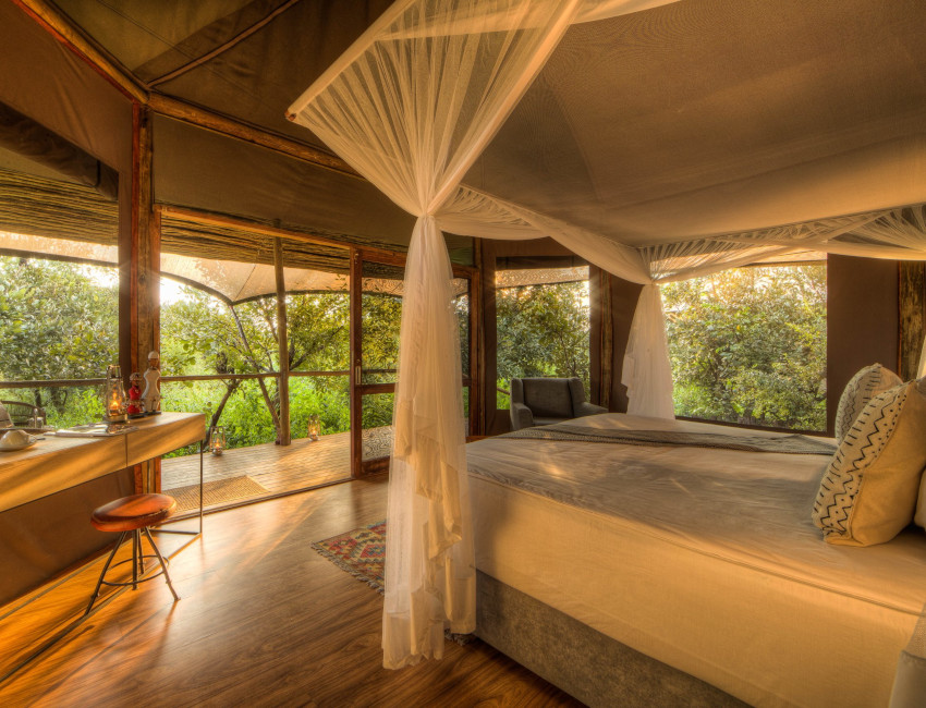 An Edwardian‑style tented camp in the western Serengeti overlooking the Grumeti Plains. With mahogany furniture, personal butlers and gourmet cuisine, it evokes 1900s safari glamour while offering prime wildlife viewing during migration.