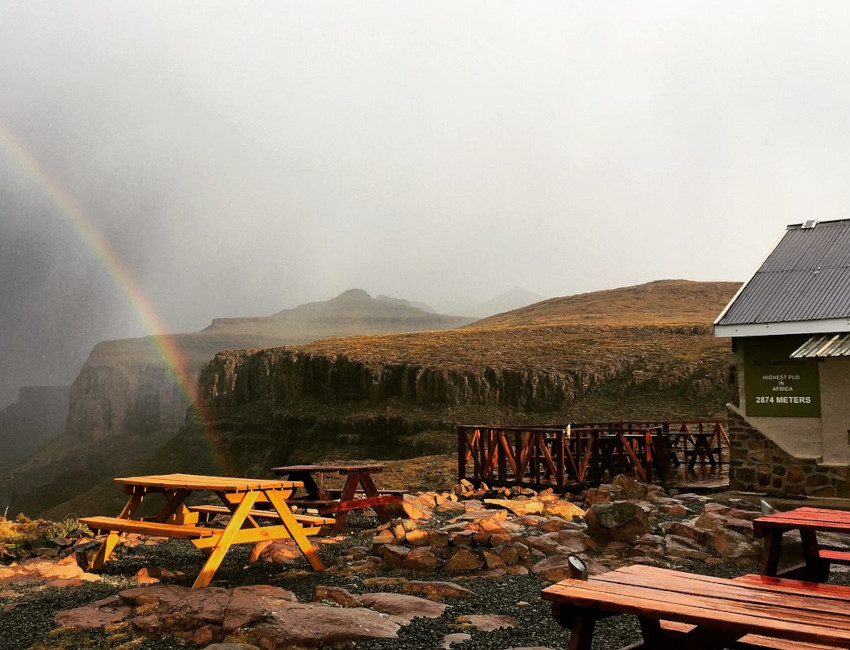 Perched at 2 874 m atop the legendary Sani Pass, this lodge offers cosy Basotho rondavels with fireplaces, Africa’s Highest Pub, stunning Drakensberg and Lesotho views and access to hiking and 4×4 adventures in the mountain kingdom.