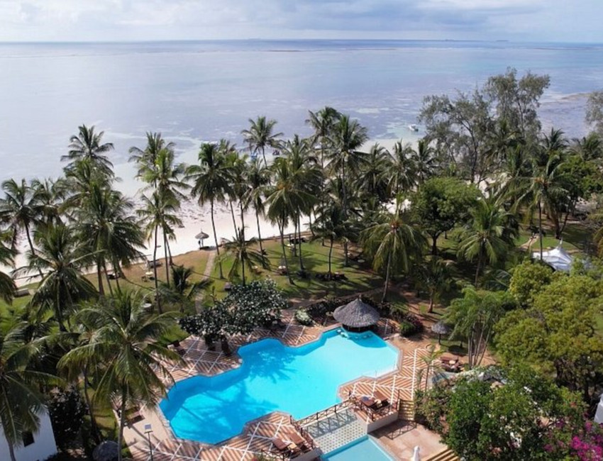 On Shanzu Beach north of Mombasa, this Swahili‑inspired resort offers white‑sand beaches, tropical gardens, water sports, a turtle sanctuary and spa. Guests enjoy diverse dining, colourful architecture and a relaxed coastal ambience.