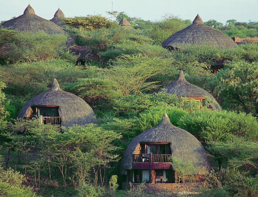Clinging to the Mto wa Mbu escarpment, this lodge overlooks the Great Rift Valley and Lake Manyara. Tree‑house‑style rooms, a pool with sweeping vistas and proximity to tree‑climbing lions and flamingos make it a unique safari stop.